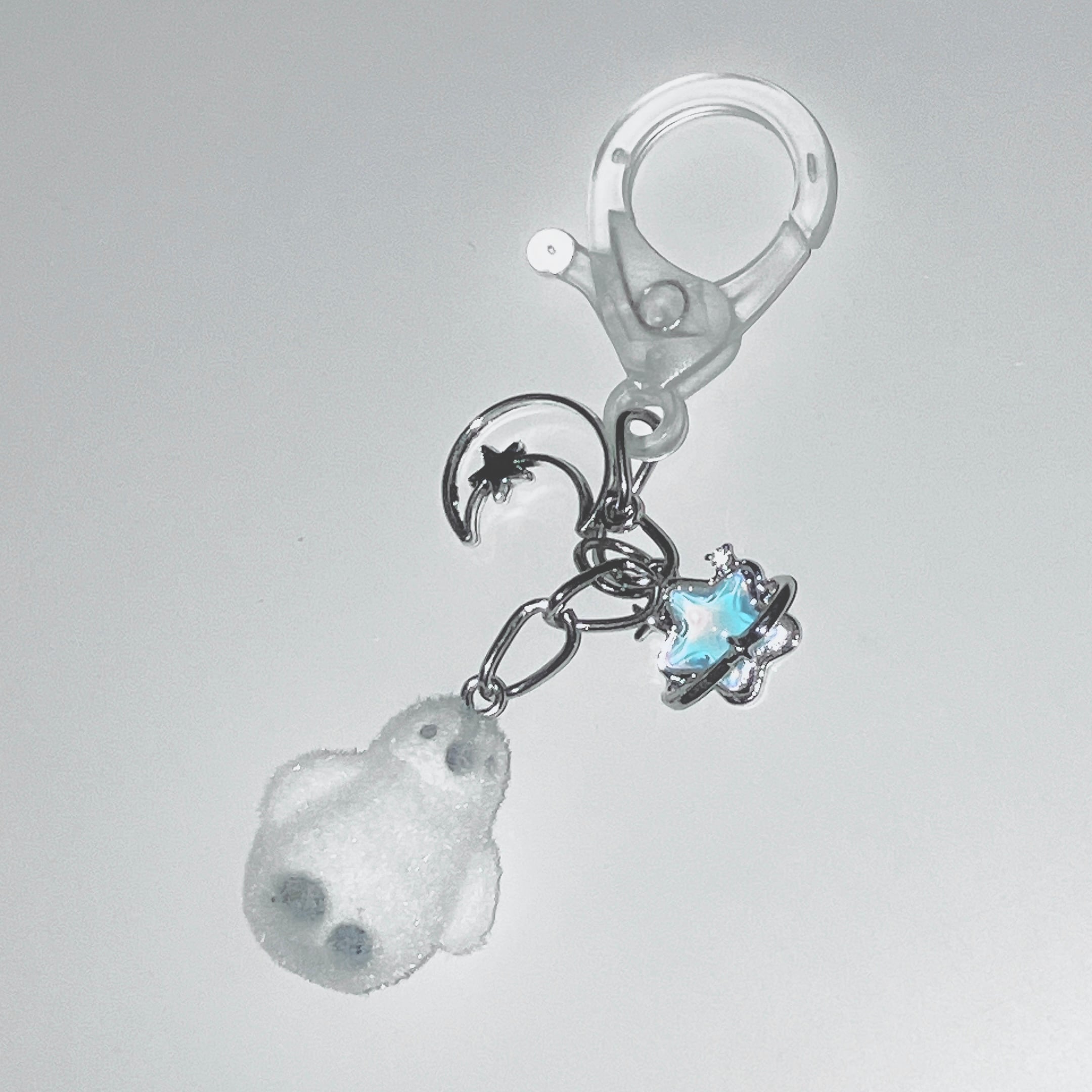 ふわふわのペンギンのキーホルダーです。